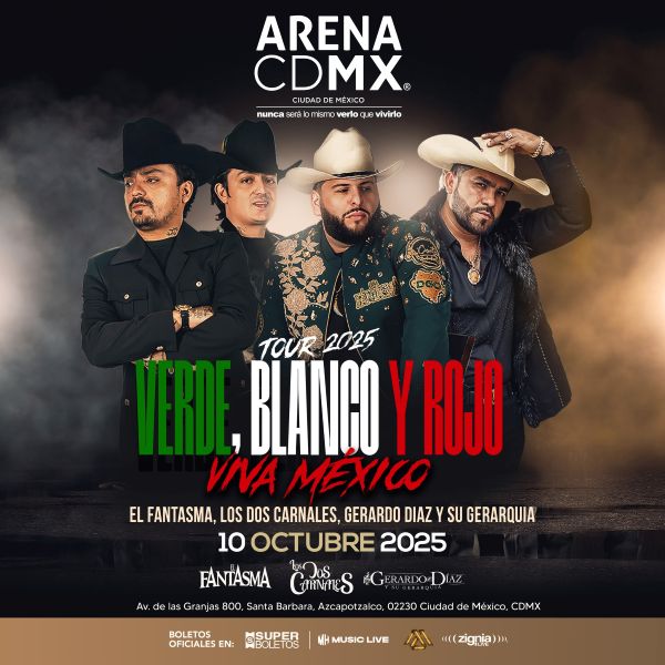 La Arena CDMX se prepara para vivir una de las noches más patrióticas y memorables del año. El próximo 10 de octubre de 2025, tres gigantes del regional mexicano —Los Dos Carnales, El Fantasma y Gerardo Díaz y su Gerarquía— unirán talentos en el marco de la gira “Verde, Blanco y Rojo ¡Viva México!”, un proyecto que celebra identidad, tradición y orgullo nacional.